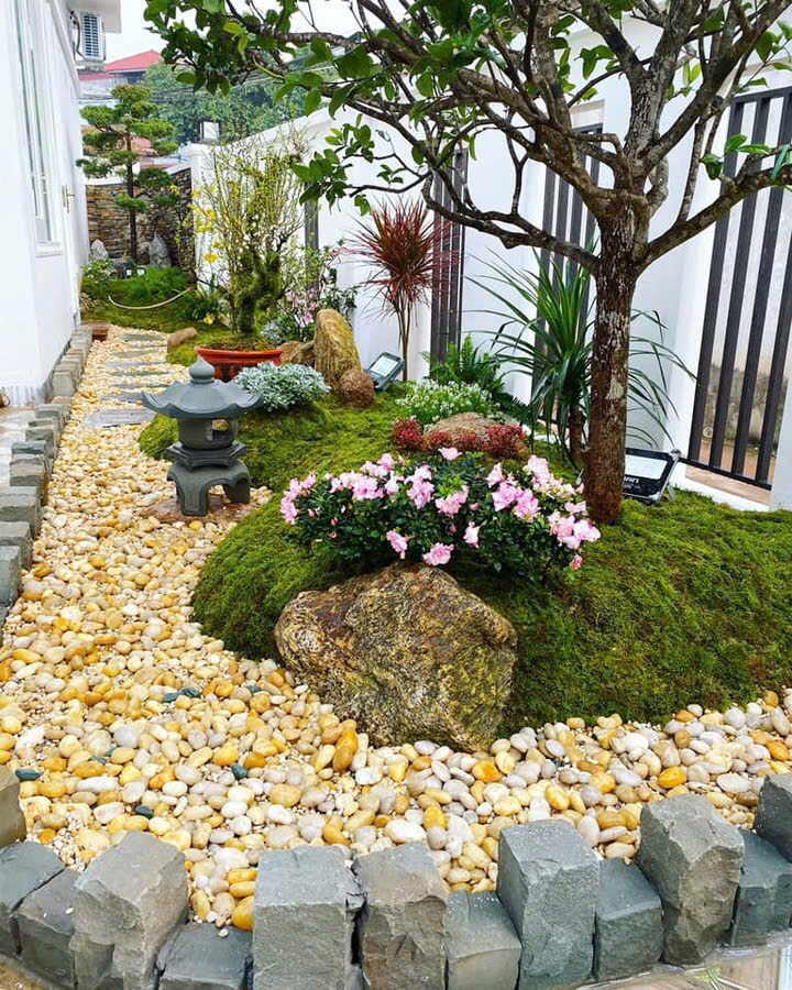 Kết hợp với đá cuội, sỏi trắng để tạo mảng phối cảnh nghệ thuật