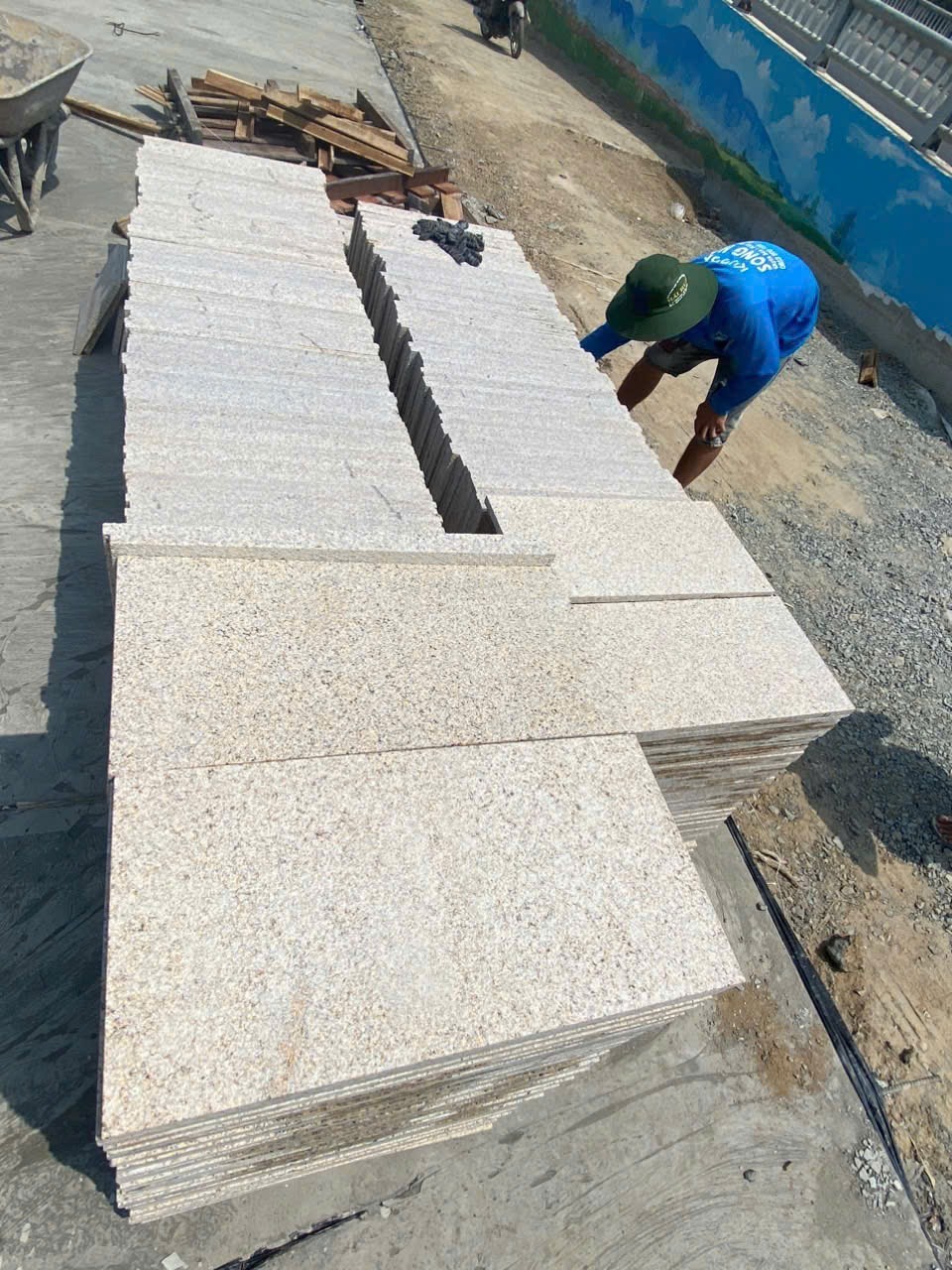Đá granite vàng băm mặt là dòng đá tự nhiên được khai thác chủ yếu tại các mỏ đá ở Bình Định – nơi nổi tiếng với nguồn đá granite chất lượng cao. Sau khi được khai thác, đá được gia công băm mặt bằng phương pháp cơ học, tạo bề mặt nhám giúp chống trơn hiệu quả, đặc biệt phù hợp với các khu vực ngoài trời như sân vườn, lối đi, vỉa hè…